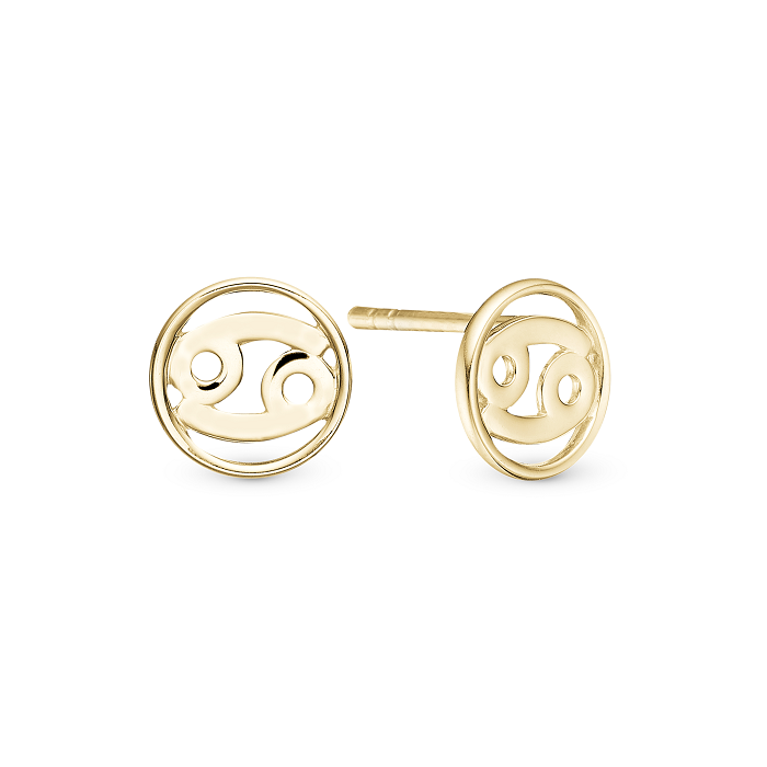 Fine forgyldte øreringe med krebsens stjernetegn.