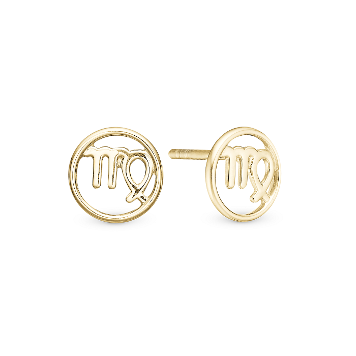Fine forgyldte øreringe med jomfruens stjerntegn.