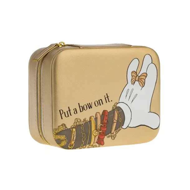 Flot smykkeskrin i guldfarve med Minnie Mouse og hendes arm.
