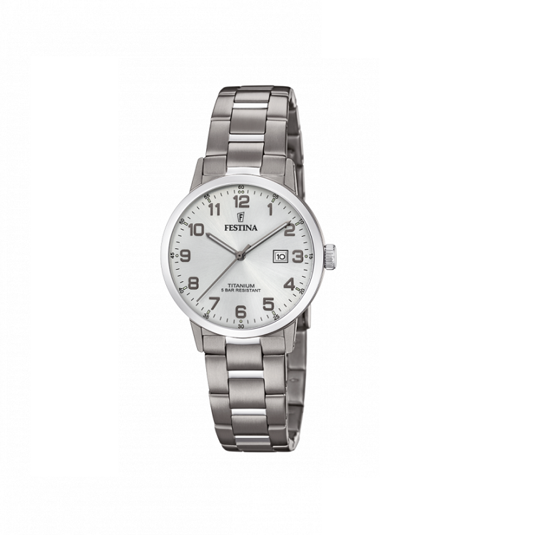 Enkle og stilfulde dameure i titanium, med tydelige visere, samt dato visning.