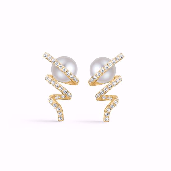 Guld & Sølv Design øreringe m zirkonia og perle 1984/1