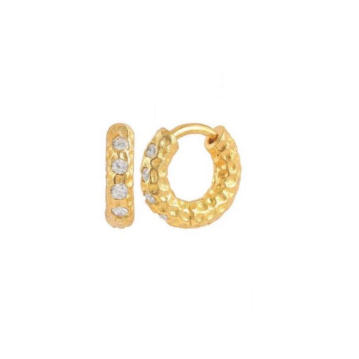 Smukke øreringe i forgyldt med banket overflade og flotte hvide zirkoner.