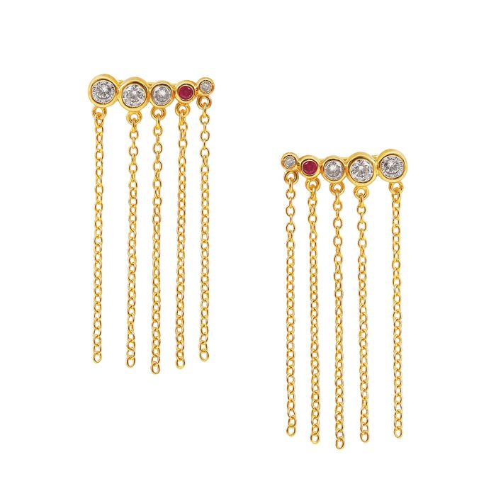 Flotte Waterfall øreringe med rød og hvide zirkonia i forgyldt