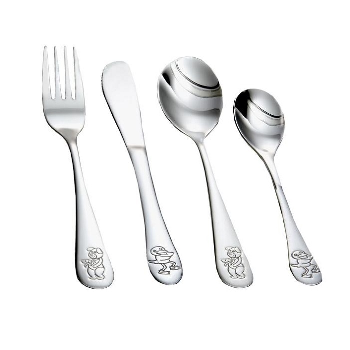 Fint bestik i rustfrit stål med Bamse og Kylling.