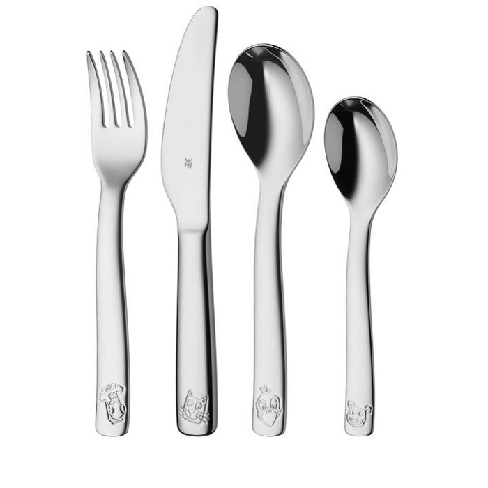 Flot bestik i rustfrit stål med bondegårsdyr.