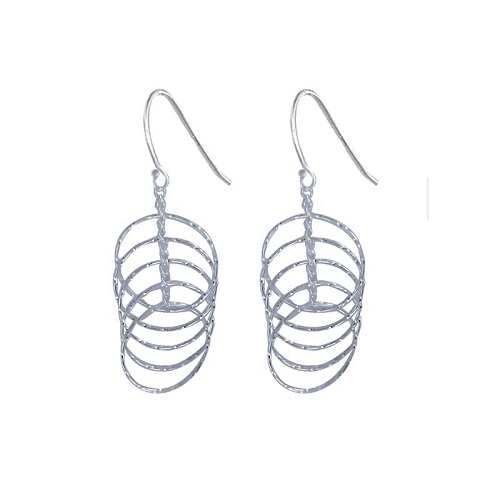 Disse øreringe sidder i en bøjle og hænger nedfra øret. Øreringen har flere cirkler som går sammen og danner et flot spil.