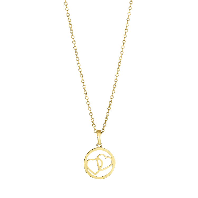 Siersbøl – 8kt. Guld vedh. cirkel m. to hjerter + forg. kæde