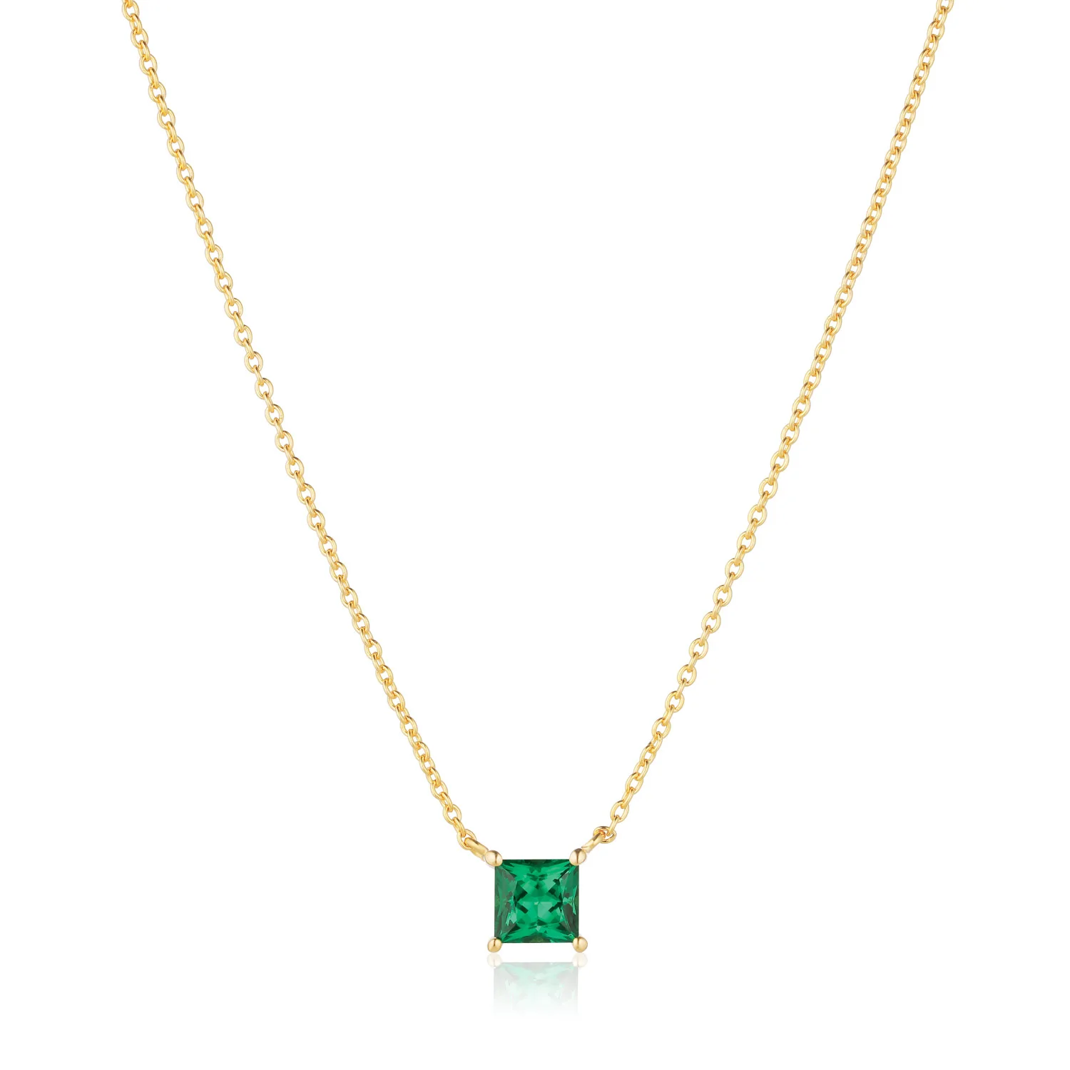 Halskæde i rhodineret sterlingsølv 925 med 18 karat guld og håndsat med emerald cut grønne zirkoner.