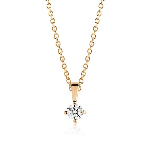 Fin halskæde i forgyldt 925 sterling sølv og med en hvid zirkonia sten som vedhæng.