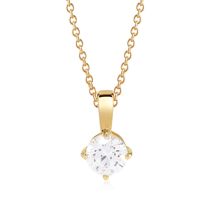 Smuk og enkel forgyldt halskæde med blankpoleret overflade og en enkelt smuk hvid zirkon.