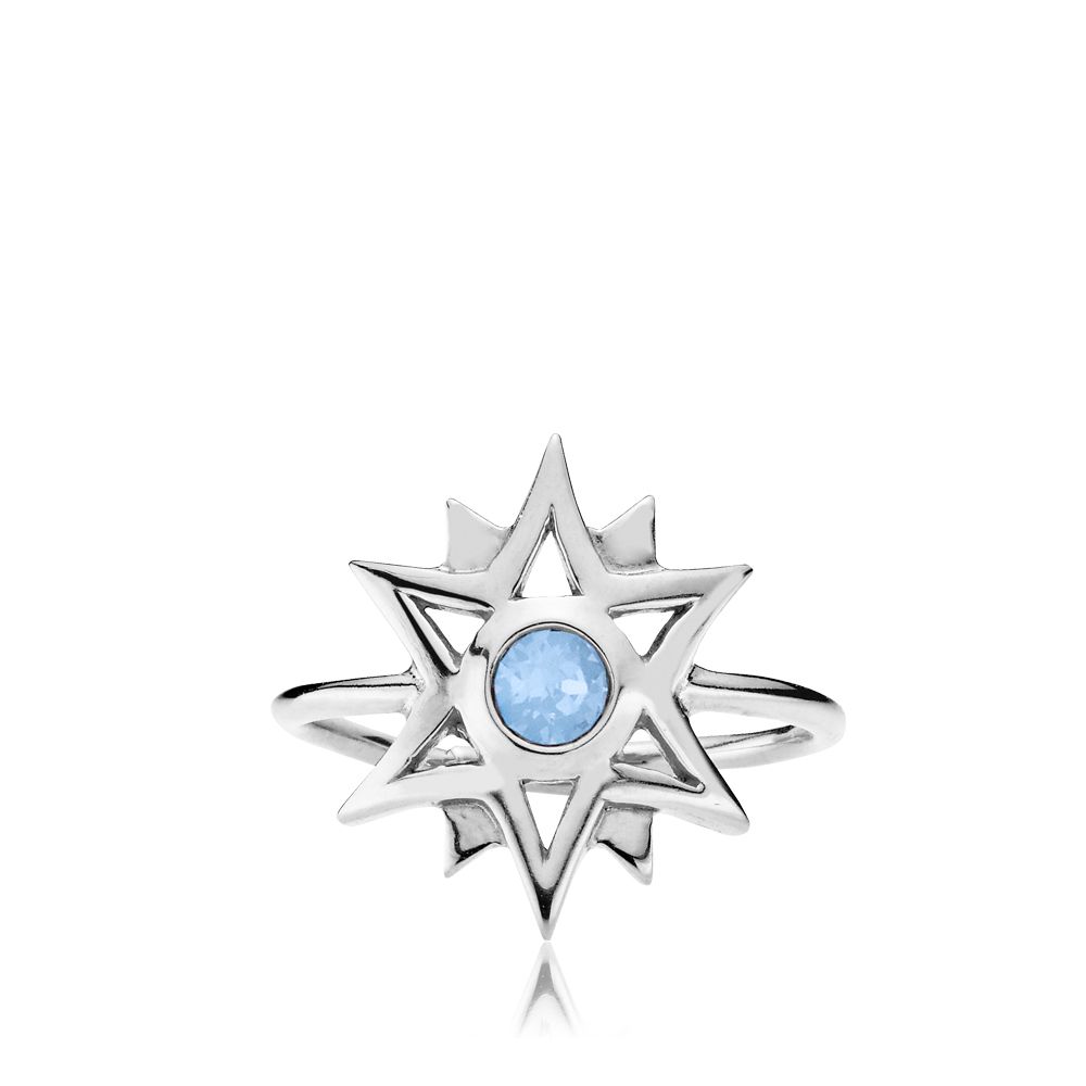One size er str. 53 og kan justeres til 50-56. Super sød med solmotiv og opalblå swarovski.