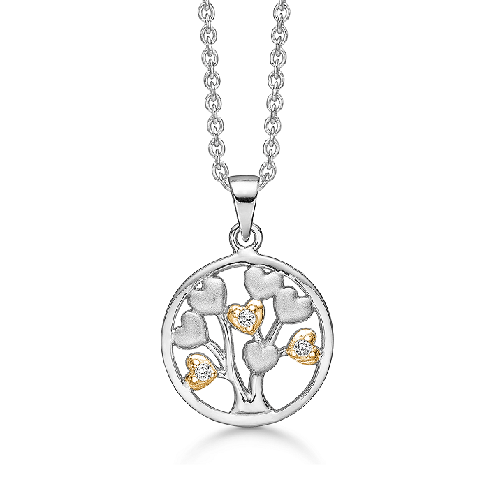 Med livets træ i hjerter, hvor nogen er forgyldt med syntetisk cubic zirconia