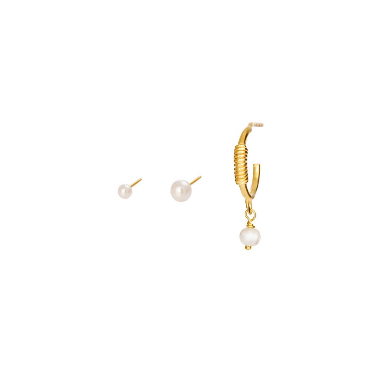 Smukke øreringe i forgyldt, sæt med 3 enkelte øreringe med perler.