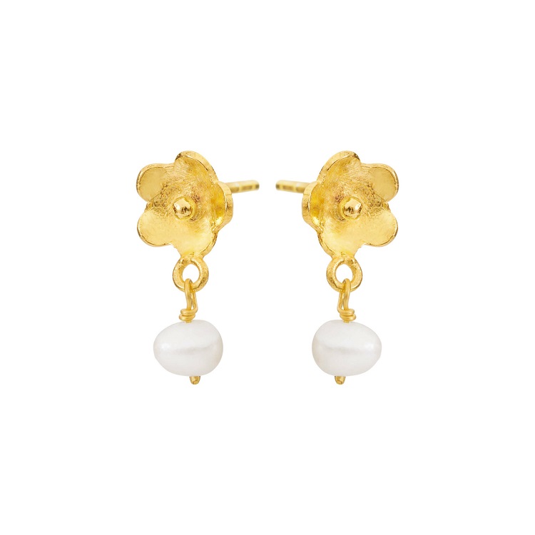 Smukke øreringe i forgyldt sterling sølv 925 med perler og fin blomst.