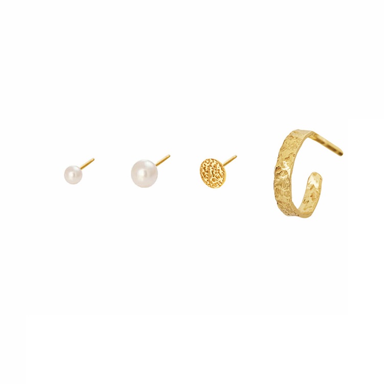 Smukke øreringe i forgyldt sterling sølv 925, sæt med 4 enkelte øreringe