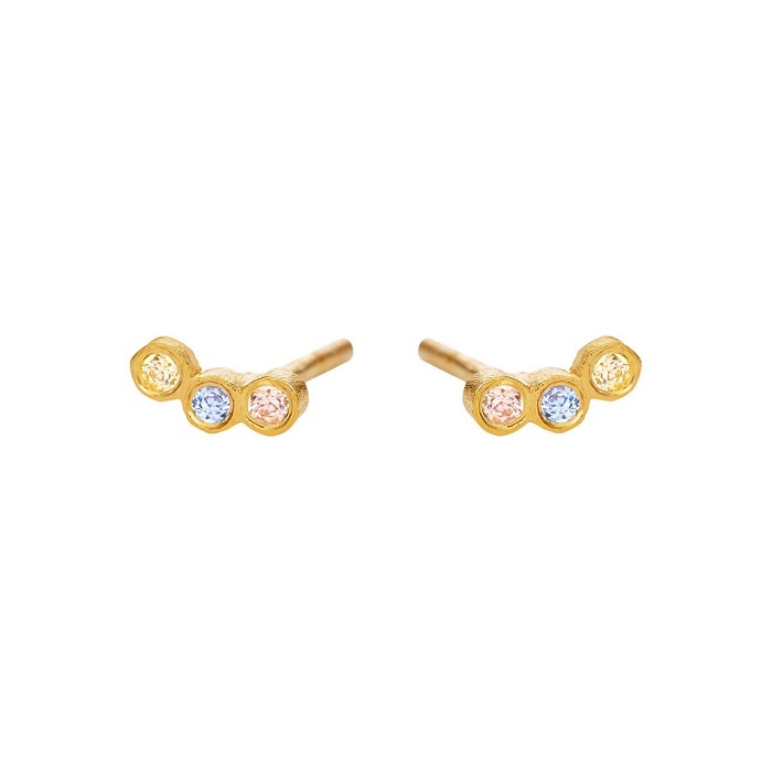 Smukke øreringe i forgyldt med flerfarvede sten.