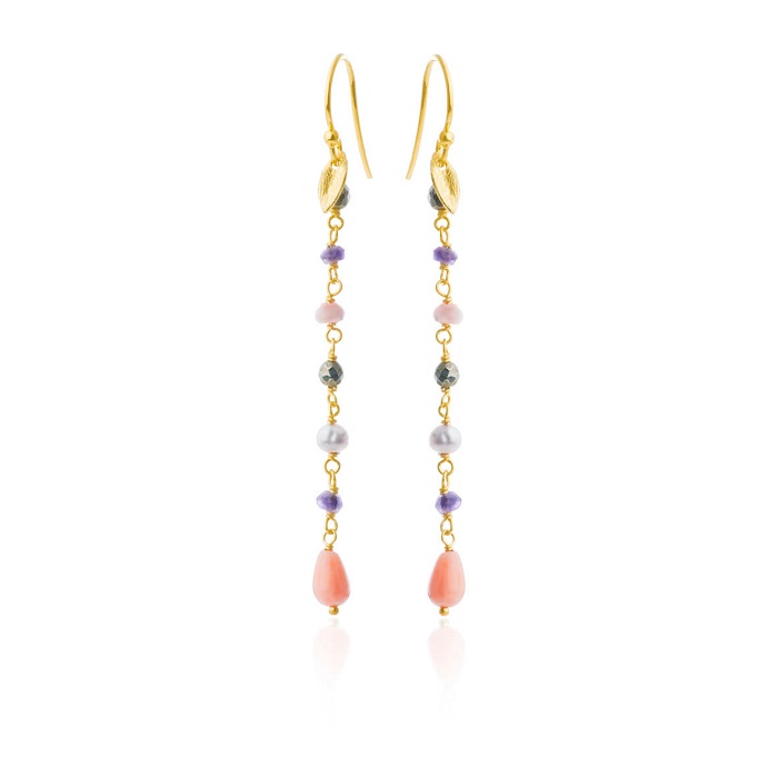 Flotte øreringe i forgyldt med ægte perler og sten