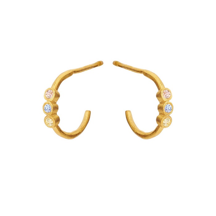 Flotte øreringe i forgyldt med flerfarvede sten.