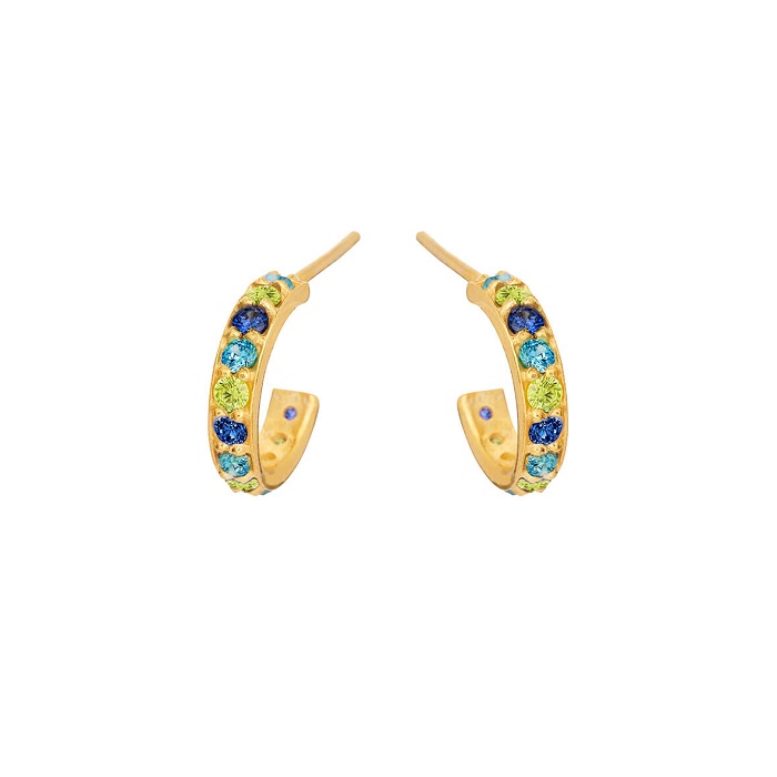 Smukke øreringe i forgyldt med multifarvede sten.